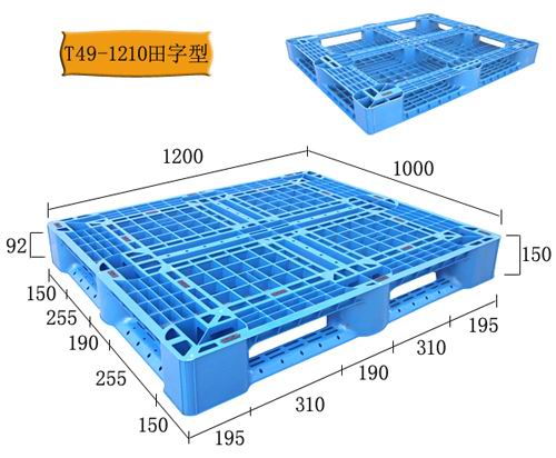 產(chǎn)品型號: HD-1210TW2 產(chǎn)品貨號: T49 產(chǎn)品外尺寸: 1200×1000×150 產(chǎn)品內尺寸: 產(chǎn)品結構: 單面網(wǎng)格 產(chǎn)品內容量(L): 承重量(T): 動(dòng)載:1T 靜載:4T 貨架:0.6T 該塑料托盤(pán)適合平地墊倉、碼垛和上貨架使用;